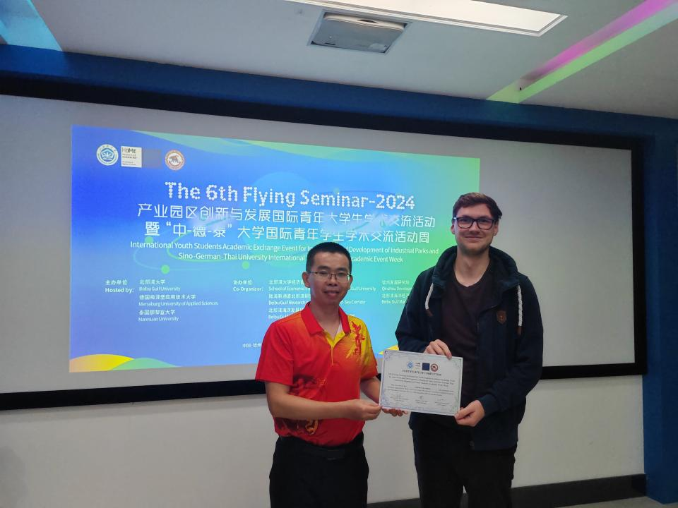 9月14日,2024产业园区创新与发展国际青年大学生学术交流活动暨“中-德-泰”大学国际青年学生学术交流活动圆满结束。本次活动为期一周,由北部湾大学、德国梅泽堡应用技术大学及泰国那黎宣大学联合主办,北部湾大学经济管理学院、北部湾海洋发展研究中心、陆海新通道北部湾研究院承办,共计60位三国高校师生参加此次活动。