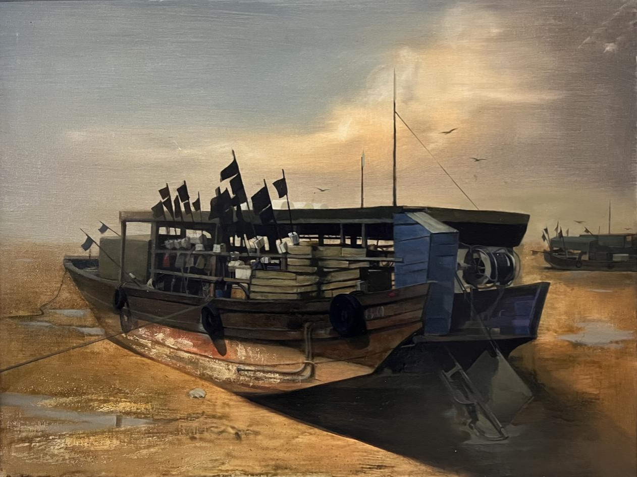 梁羽茜作品:《渔舟·忆》(油画)70cm×80cm