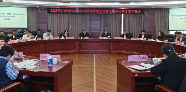 11月13日,“2025年广西高校人文社科重点研究基地重大项目立项管理会议”在桂林市召开。此次会议由自治区教育厅主办、广西人文社会科学发展研究中心和桂林旅游学院联合承办。北部湾大学党委常委、副校长,北部湾海洋发展研究中心主任马秀明参加会议并交流发言。