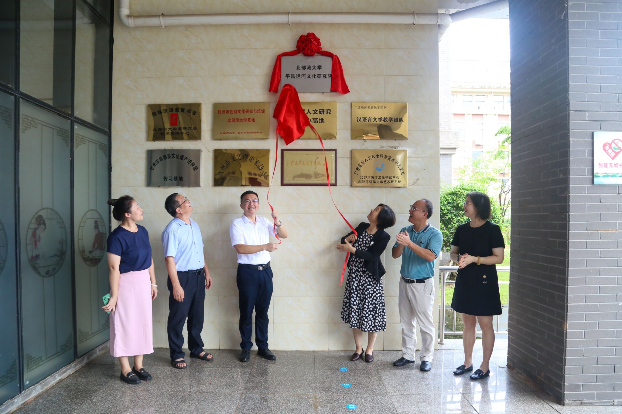 6月12日上午,北部湾大学平陆运河文化研究院揭牌仪式在人文学院举行。学校党委副书记、北部湾海洋发展研究中心主任陈磊,党委常委、副校长陈丹、相关职能部门领导及教师代表出席揭牌仪式。