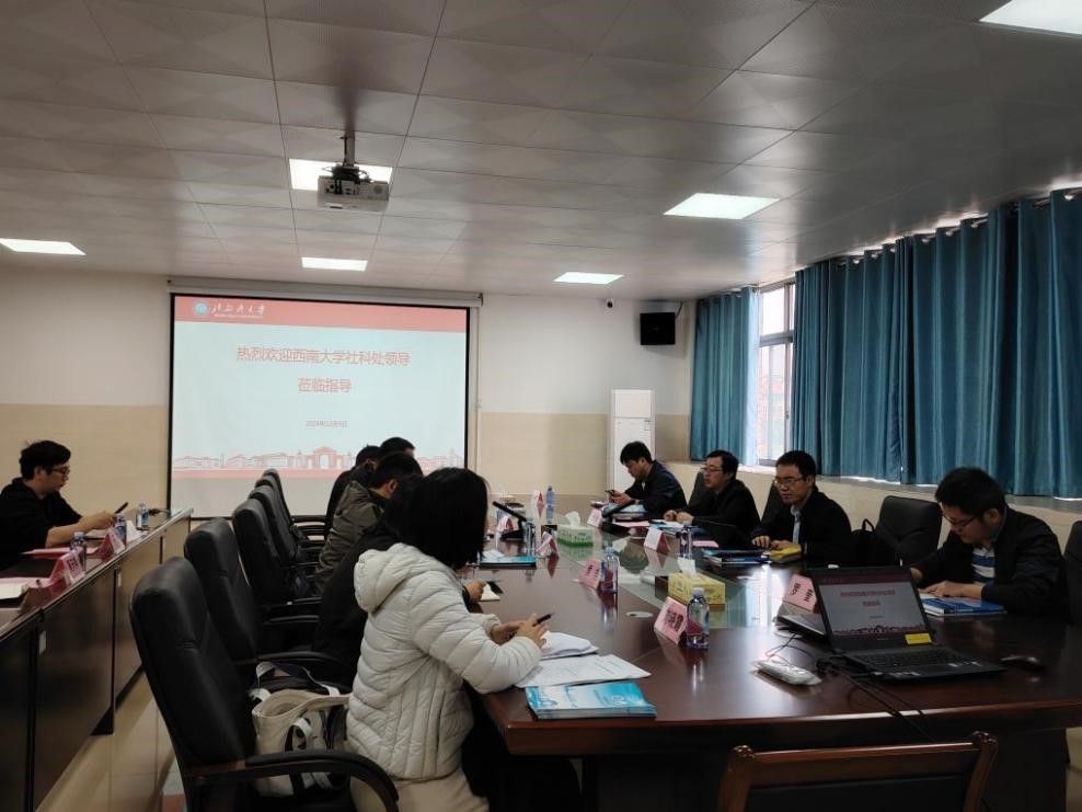 12月9日,西南大学社科处副处长刘新智、率西南大学调研组一行4人来校交流,就两校陆海新通道智库发展合作与智库联盟建设等内容进行调研交流。北部湾大学科技处副处长郭哲、北部湾大学经济管理学院院长、北部湾海洋发展研究中心副主任朱念以及陆海新通道北部湾研究院、钦州发展研究院、平陆运河文化研究院等社科平台相关负责人一同参加座谈会议。